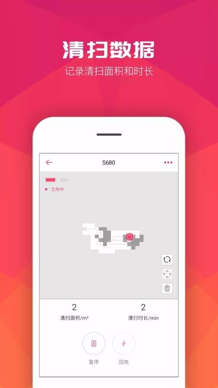 清扫的区域和面积情况会直观展示,可以控制清扫指定位置;