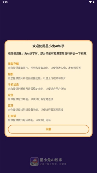 软件安装完毕后,启动应用程序,勾选同意用户协议和隐私政策的选项,同时授予所需的各项权限。