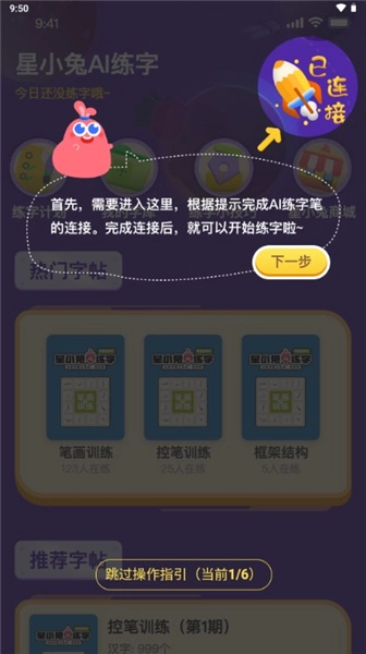 在软件里,只有连接上AI练字笔,才能开展练字活动。