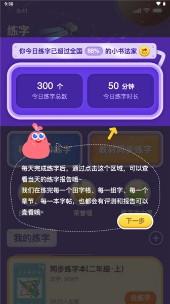 可以根据每日目标设置自动提醒,通过趣味化的任务挑战和勋章奖励机制,激发孩子主动坚持练习书写。