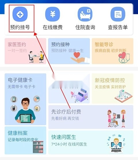 点击上方的“预约挂号”功能。