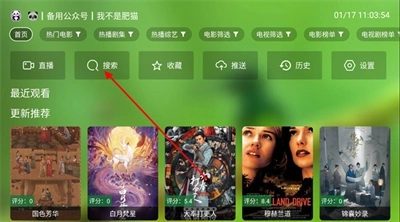 3、点击箭头所指的搜索按钮,输入关键词来精准查找你喜欢观看的电视频道