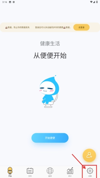 1、启动健康管理应用,点击底部的设置按钮,进入设置界面。
