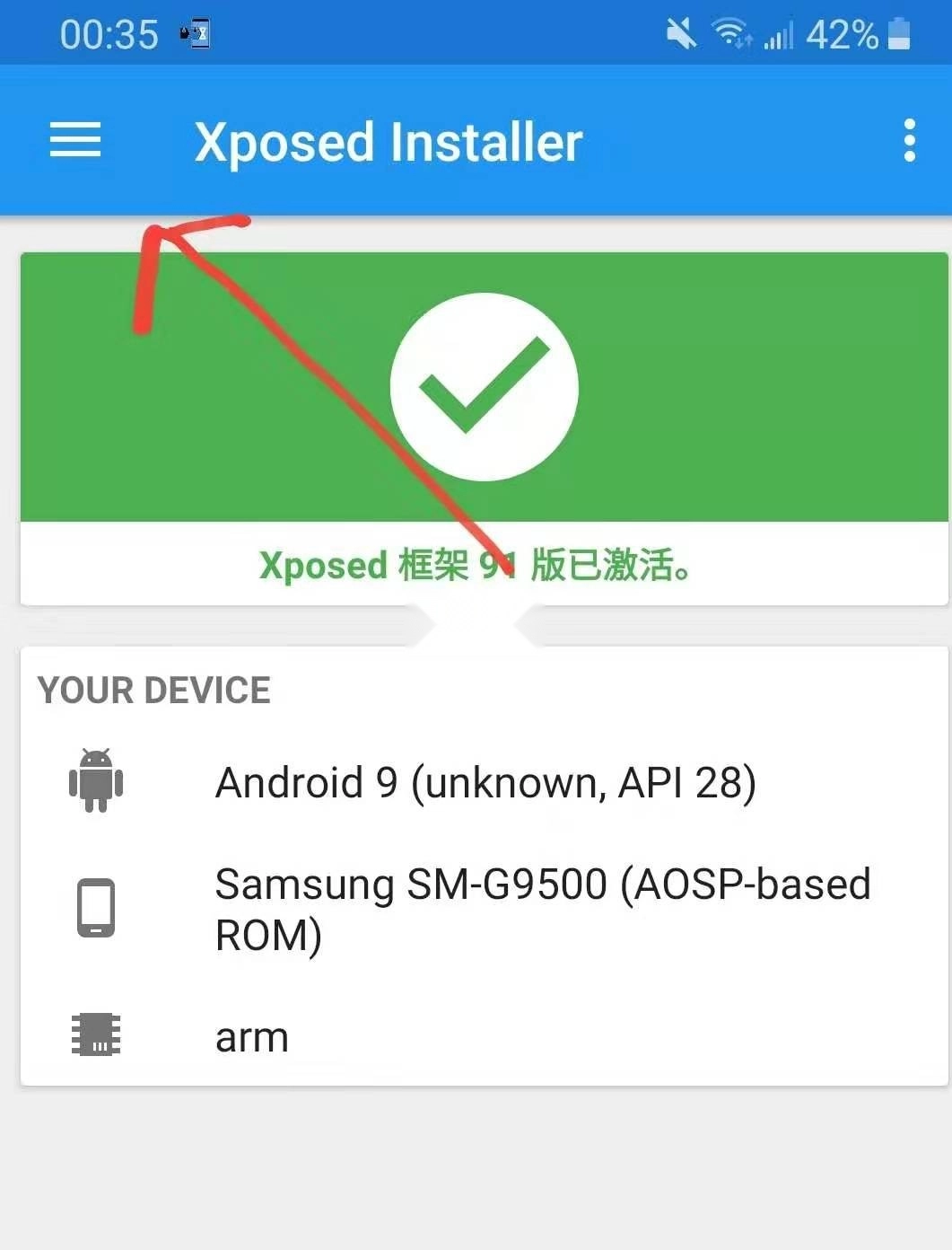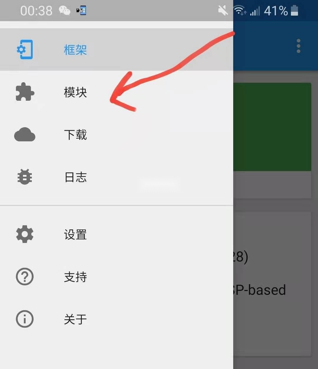 6:点击打开框架里第三个 "Xposed Installer";打开后点击首页左上角的菜单按钮