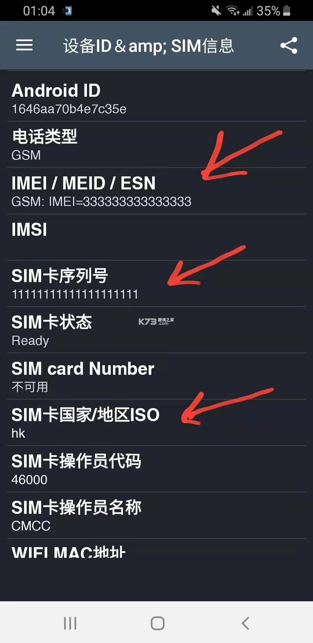 2:打开 "设备ID" ,可以看到读取到的敏感数据已经改为我们设定好的伪装数据;