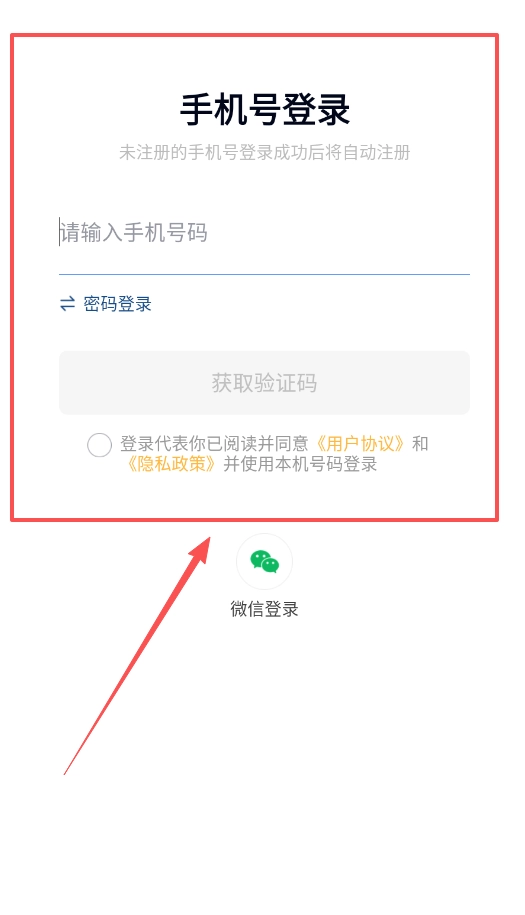 1、打开软件后,映入眼帘的是手机号登录界面。若输入未注册的号码,系统会自动为您注册账号,接着点击获取验证码,即可完成登录,操作十分便捷。