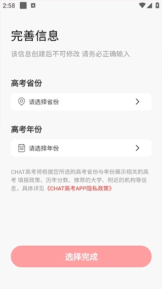 CHAT高考是一款专门为高考生打造的院校志愿填报辅助工具。CHAT高考的最新版本软件,依靠其卓越的AI智能以及大数据功能,如同为无数高考生点亮了指引前行方向的灯塔。CHAT高考整合了全国各大高校的详尽信息,涵盖历年录取分数线、专业设置情况、就业前景等方面,使得考生和家长能够清晰明了地获取这些信息。
