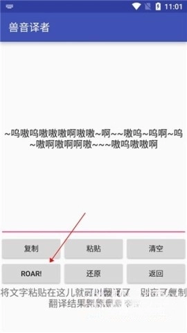 2、如图所示,把你想要翻译的文字输入或者粘贴进去,接着点击“roar”按钮就可以了。