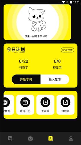 3、点击书本图标就是学习单词的地方,有多种学习方式,比如选择题,填空听写等。