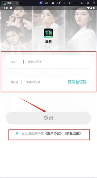 4、输入手机号及验证码,点击登陆。