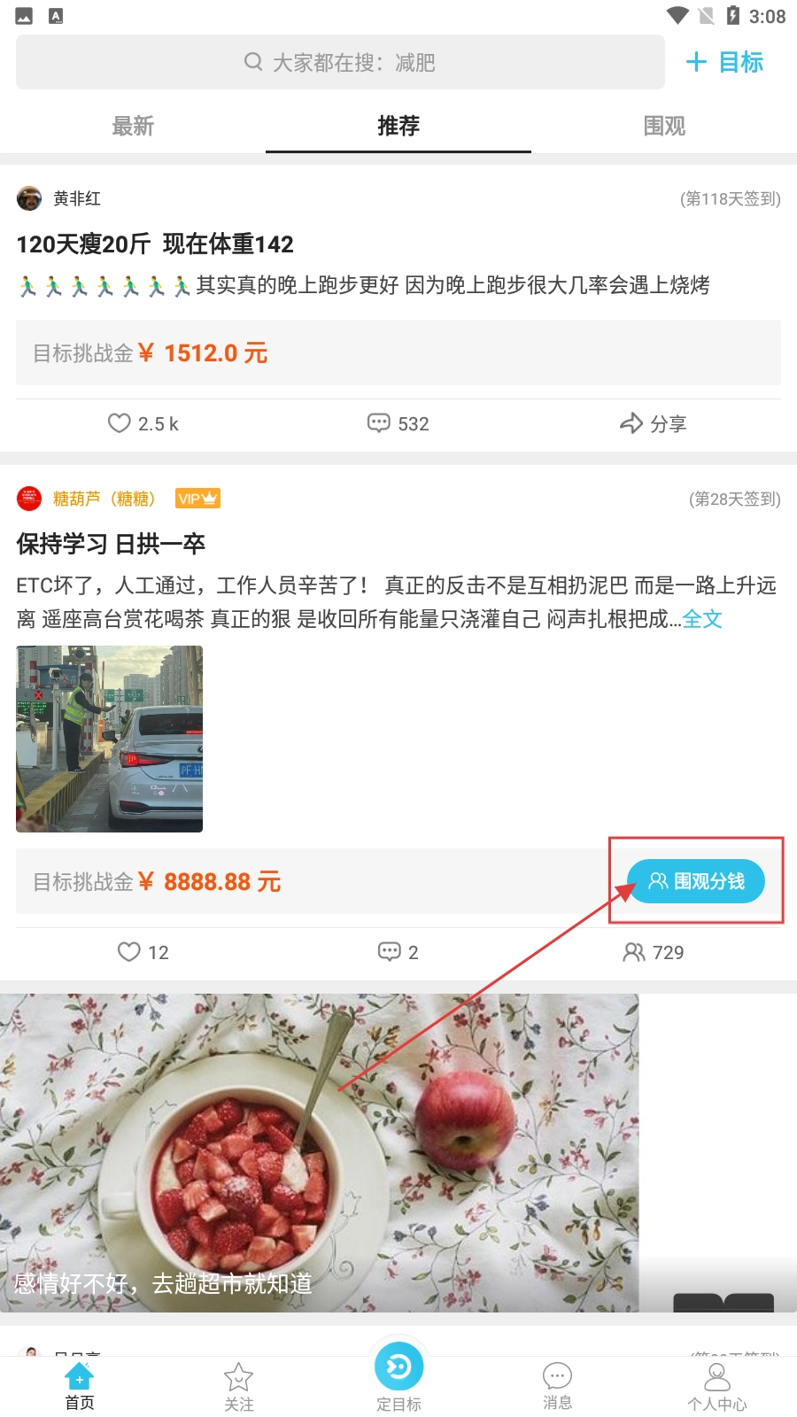 完善的金钱激励机制具备双重优势:一方面能促使用户主动为交付承诺金发起挑战,另一方面用户还可通过围观其他用户的目标来获取奖励,如此一举两得,有效调动了大家的参与热情。