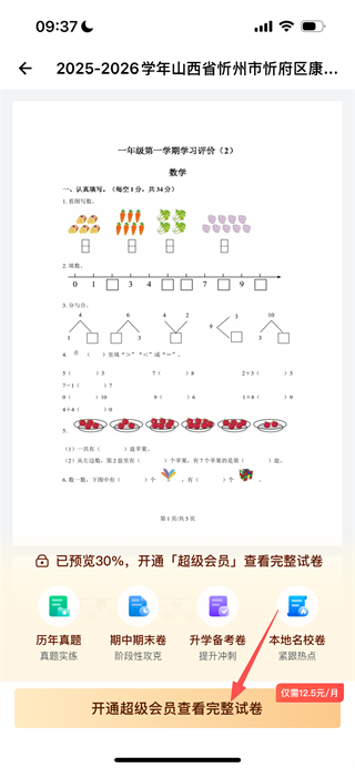 3、于会员中心页面,成功开通超级会员之后,便能查看完整试卷。