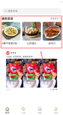1. 来到首页,点击“最新菜谱”,就能查询到食谱的制作方法,按照该方法操作即可。