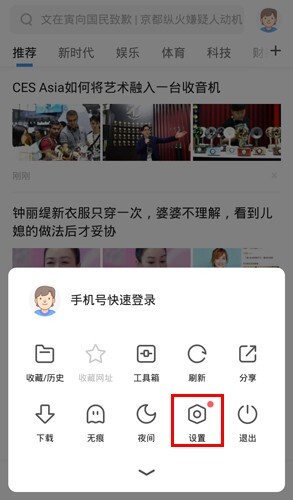 第一步:开启【极速浏览器】,于界面下方寻觅【三】按钮,随后进入功能页面。