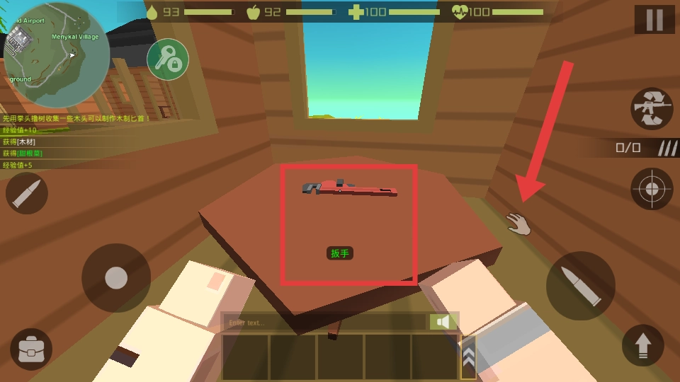 1. 操控左侧移动摇杆来控制角色移动,朝着场景里的木屋进发,对资源点展开探索。