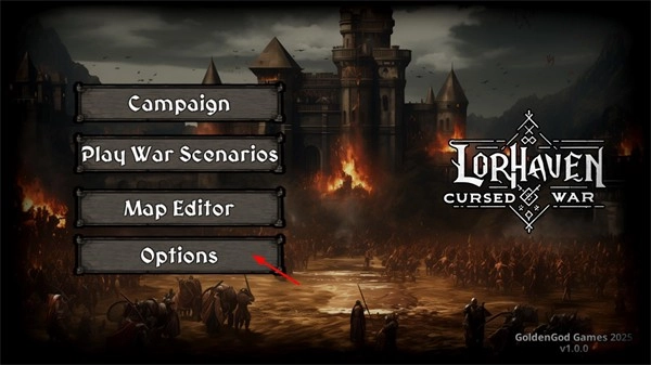 进入游戏后,点击主界面上的options按钮,即可进入设置界面。