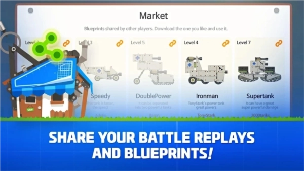 超级战车大作战的功能数量不算多,但覆盖得很全面,每一项功能都有着不可或缺的重要性。游戏的核心玩法主要由战车组装与战车对抗这两大部分构成。在不少以车辆为主题的游戏里,亲手组装出自己心仪的战车往往难以实现,而这款游戏恰好能满足玩家打造专属战车的梦想。它的车库组装界面十分完备,配件的种类虽不算丰富,却依然充满乐趣,并且每一种配件都是组装过程中必不可少的。除此之外,玩家还能在游戏里上传分享自己引以为傲的战车作品,也可以直接使用其他玩家分享的优秀作品。