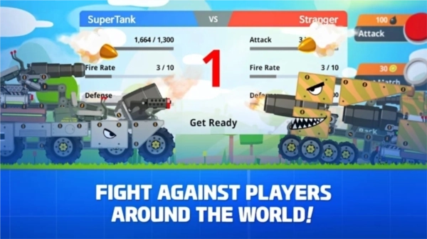 超级战车大作战是一款休闲有趣的战车竞技对决游戏,游戏画面精致,采用卡通画风设计。玩家可以自由组装战车,操作战车参与战斗,游戏操作十分简单,只需控制战车方向,移动到合适距离后点击射击开炮即可。此外,游戏内的零件种类丰富,玩家能组装出各式各样的战车,带来很棒的游戏乐趣。