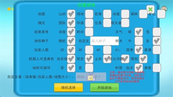 地形生成采用双重机制:既支持随机生成,每局游戏的地图布局与资源分布都各不相同,让探索始终充满新鲜感;也允许输入自定义种子代码,以此生成固定地形,满足战术演练或复刻经典战场的需求。