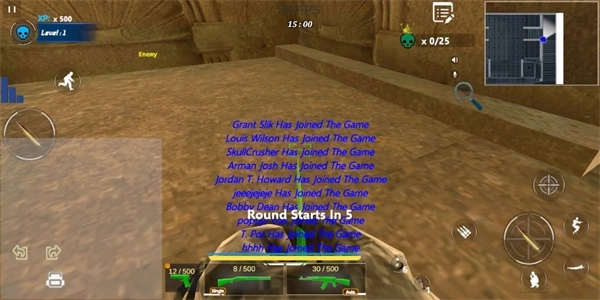 5、玩家能够借助虚拟键盘操控角色移动,右下方的按键具备射击、换弹、半蹲、趴下等多种功能。