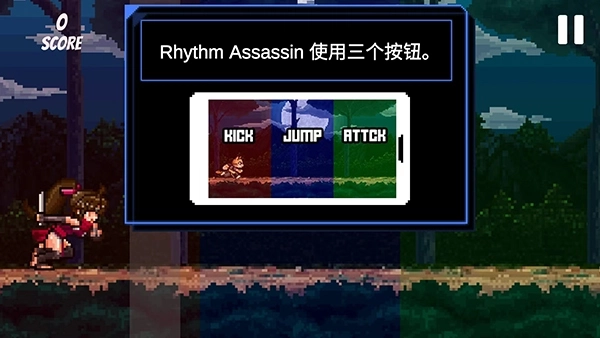 3、游戏界面划分成左、中、右三个不同颜色的区域,玩家能够借助左侧的KICK踢腿按钮、中间的JUMP跳跃按钮以及右侧的ATTCK攻击按钮这三个操作按键来完成关卡挑战。