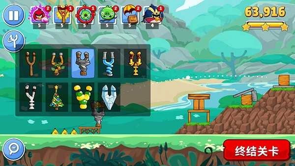 通过触屏操作调整弹弓角度与力度,精准发射小鸟完成任务。每种小鸟都有独特技能,需要合理选择使用顺序。
