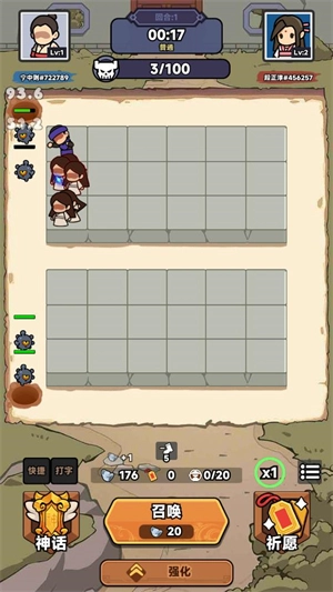 进入关卡后可以点击召唤来召唤不同品质的侠客。