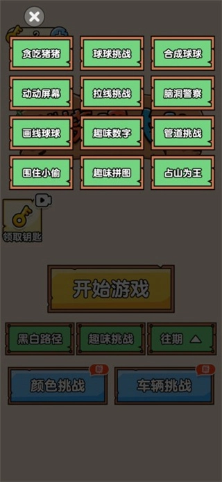 在《燃烧吧大脑》游戏中,点击“开始游戏”按钮就能进入普通模式,此外游戏还提供了黑白路径、趣味挑战、往期回顾、颜色挑战、车辆挑战等多种不同的玩法模式。