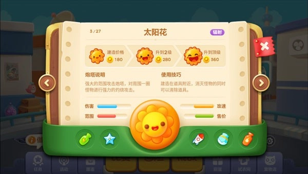 炮塔放置:太阳花作为群伤技能,位置选择至关重要,选对位置才能充分发挥其最大价值。它尤其适合部署在U型区域,若能搭配减速类炮塔使用,效果会更加出色。