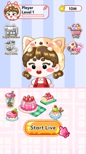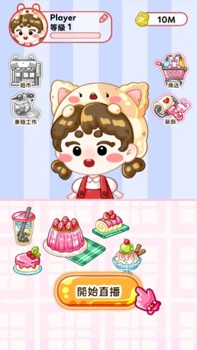 吃播体验:将制作好的果冻拖到角色嘴边,通过吃播吸引观众点赞和打赏,获得金币奖励。