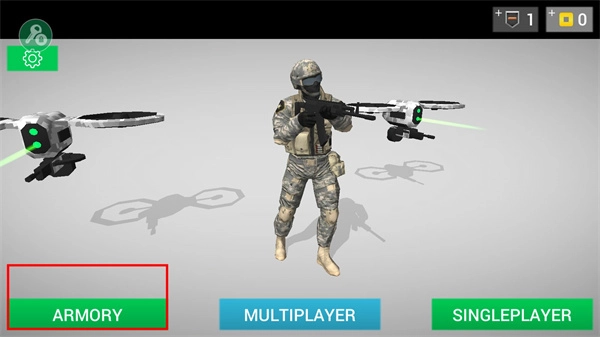 1、先进入游戏,点击【ARMORY】就能购买武器装备之类的物品,这些东西在战斗时都能给你提供不少帮助。