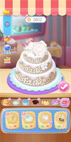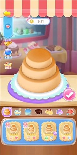 3、在制作中蛋糕时,玩家要选取不同蛋糕体、挤出不同口味的奶油、摆放各式装饰品,为其提升价值!