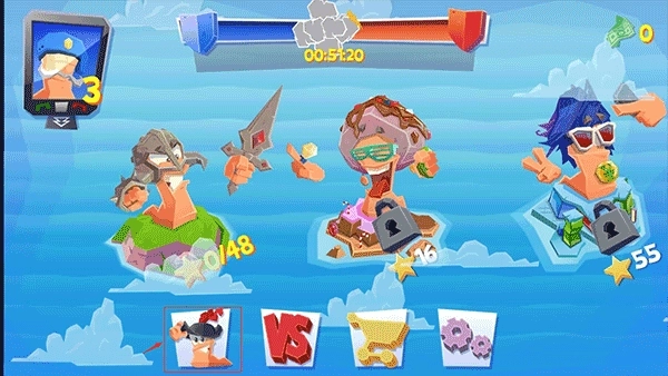2、对战的地点不一,如天空,沙滩、下水道、古堡,农场及垃圾场等。