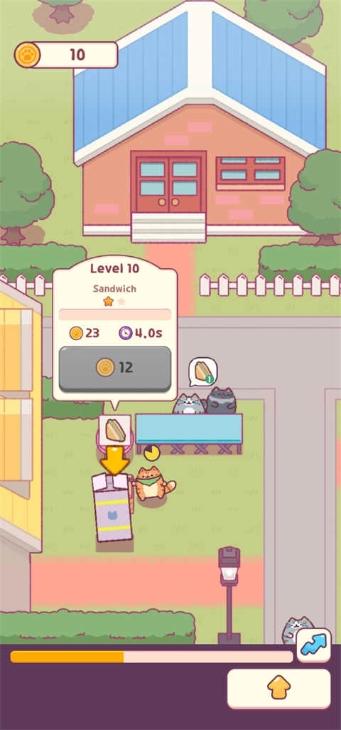 6、点击下方黄色的箭头,这里可以在收获一只猫猫,可以帮助你制作三明治;