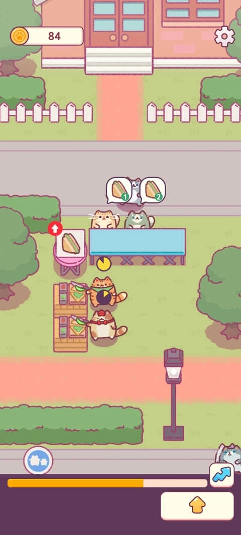 6、玩法轻松有趣,在可爱的世界中和一群可爱的小猫咪一起研发新品种的小吃吧