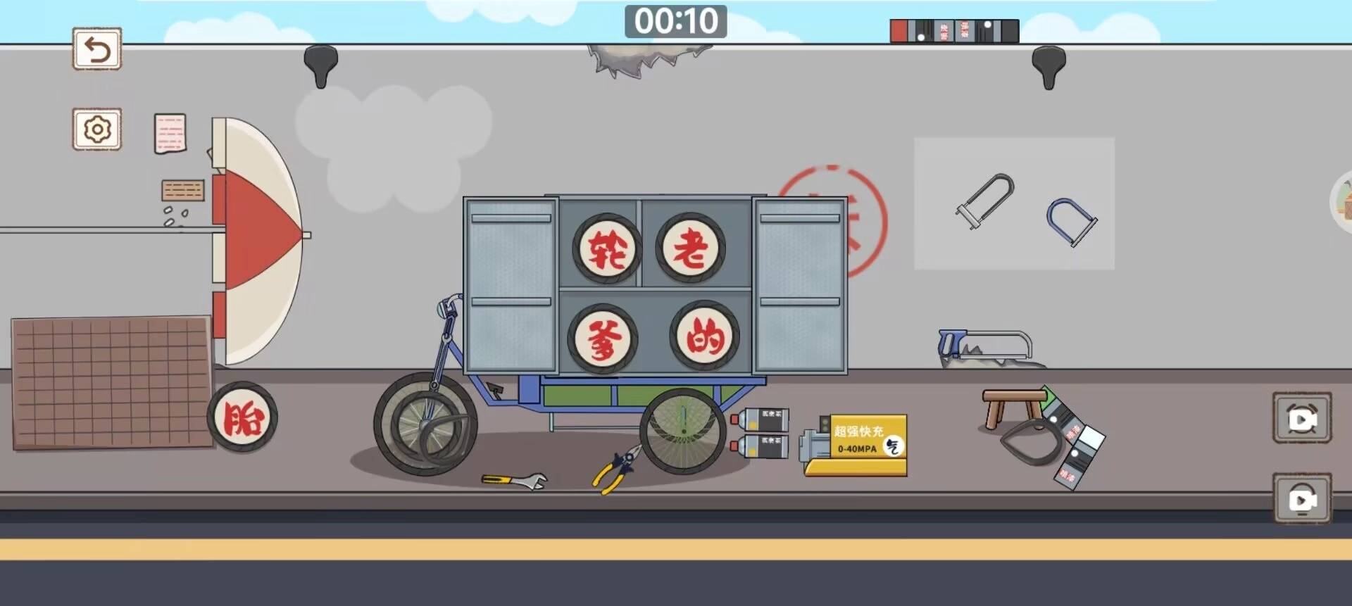 第三步,将所有可移动的物品以最佳的形态收纳到三轮车中即可通关。