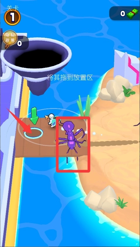 3、抓到的蚂蚁拖到放置区,先暂时存放起来,攒够一定数量再统一安排。