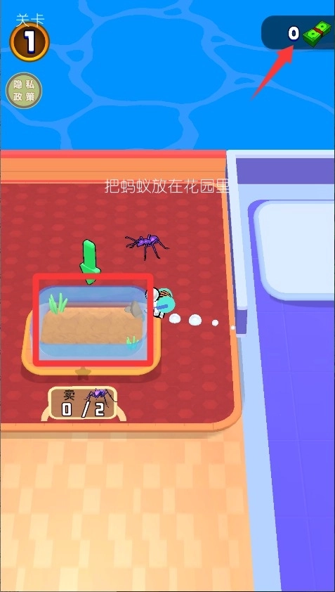 4、把蚂蚁放进花园特定区域,不同种类要分开养,放对了能获得额外奖励加成。
