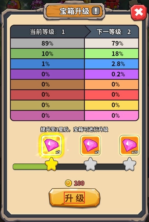 4、玩家出售装备获得的金币可以用来提升宝箱等级,提高高品质装备的概率。