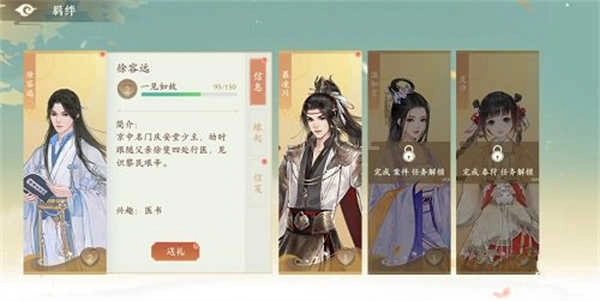 1、在菜单栏中找到羁绊选项,解锁特定支线剧情后,就能看到四位角色了。