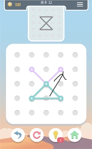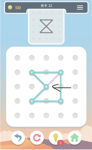 按住一个点,朝着上下左右任意方向滑动,就能形成一条线,借助你的想象力,最终构成一个完整的图案。越往后的关卡,对想象力的考验就越大。