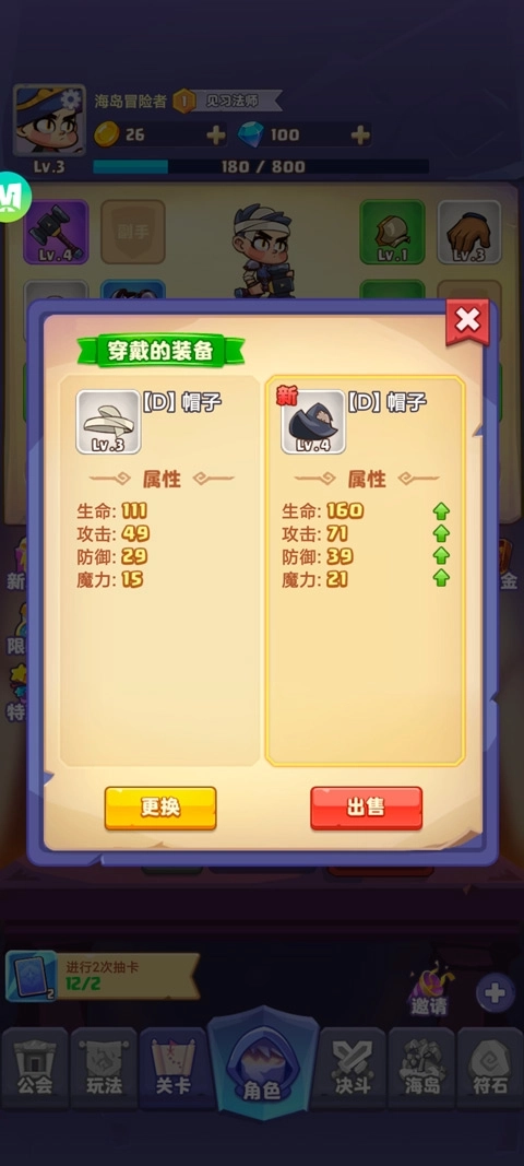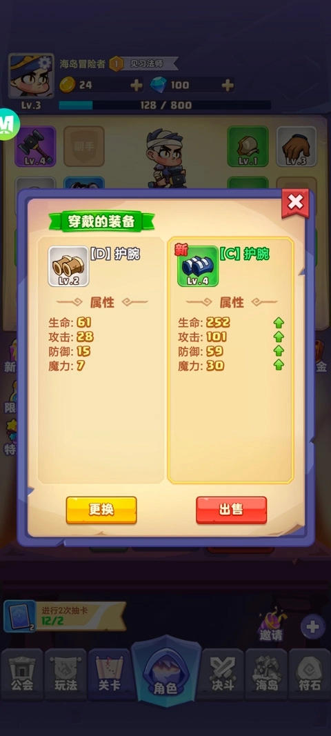 4、装备被划分成不同等级,各等级装备的属性存在差别。若抽到重复的装备,可依据其属性选择更换或出售。