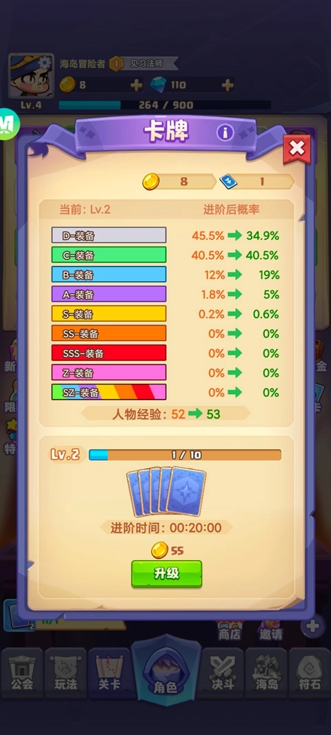 5、你还能借助升级卡牌池的方式来获得更厉害的武器,卡牌池等级越高,你得到高级装备的几率就越大