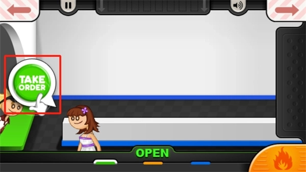 5、打开门后会有顾客来买食物,我们点击【takeorder】进行交谈,了解对方的需求;