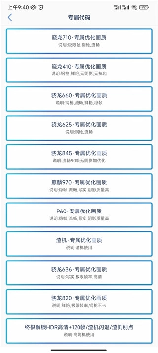 1、打开画质修改助手后,你能够依据自己的手机型号挑选适配的机型配置;