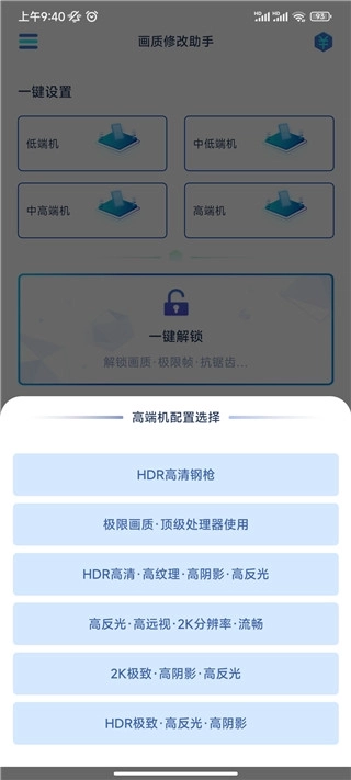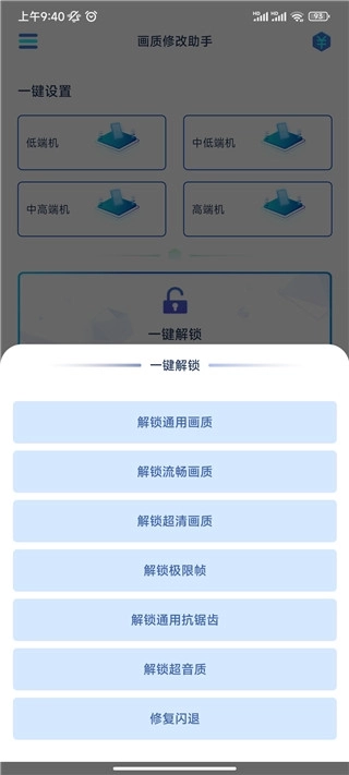 3、你还能通过一键解锁自己想要的画质,或是一键还原画质等,甚至可以根据自身需求进行一键修改画质。