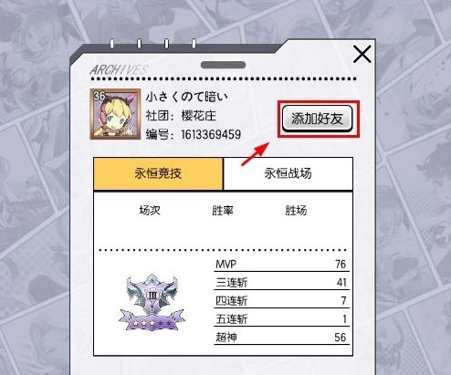 6、选择要添加好友的玩家,点击并查看玩家信息;
