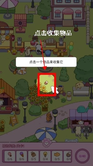 1、玩家进入游戏后可以点击一个物品进行收集。