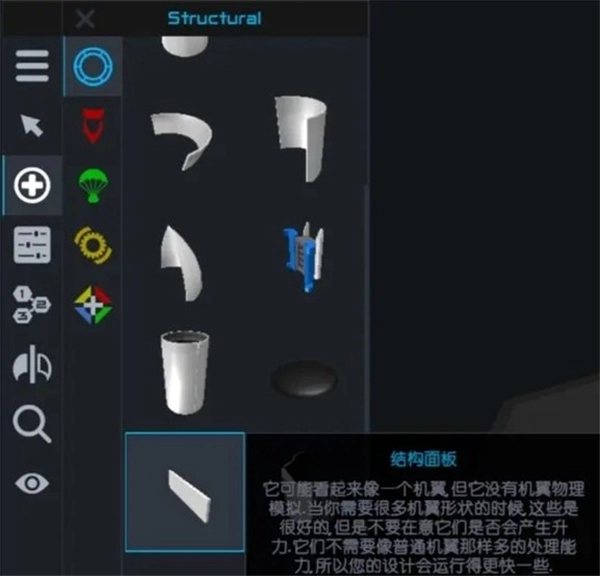 简单说,就是可用于火箭或飞船装饰用的一个板子,有一个零件接口,形状和颜色调整空间大,应用广泛,可以用作火箭或飞船内饰,如:飞船内部的按钮,当然是对飞船的操控不起作用的,只是装饰作用;也可以制作成火箭发射平台,这些的设计就因人而异了。