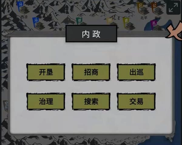 军事,鸟瞰陆地、征兵诛讨、分派军粮、打劫城池。